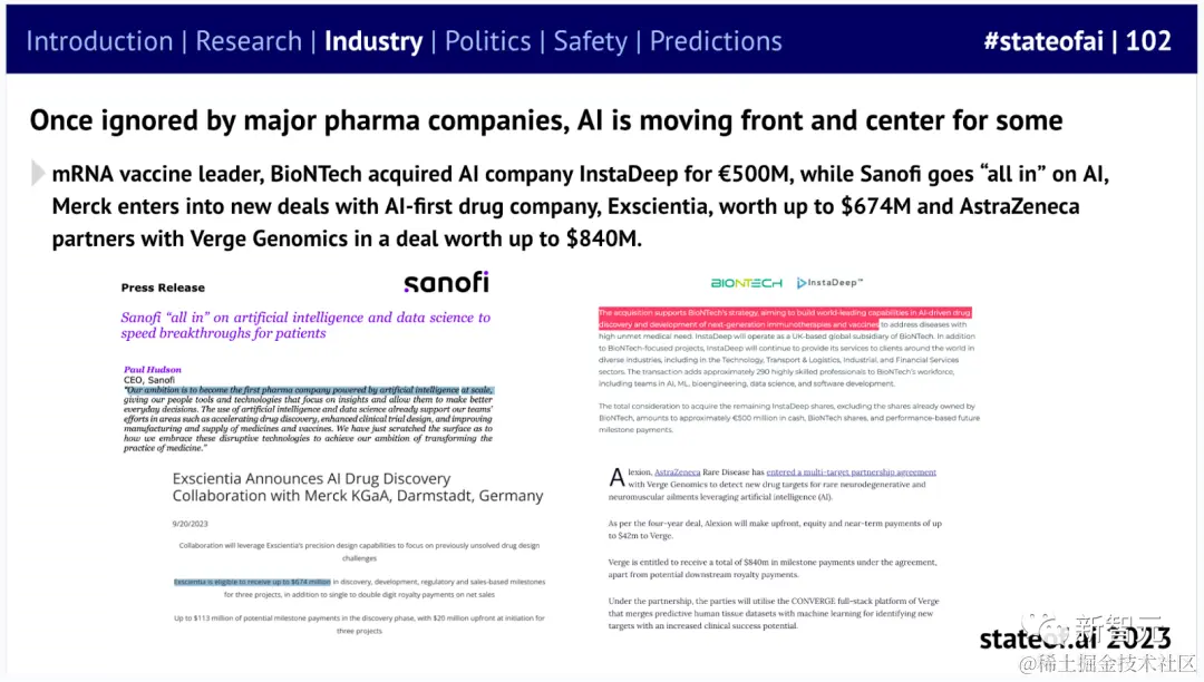 许多传统制药公司已 All In 人工智能,与 Exscientia 和 InstaDeep 等公司达成了价值数十亿美元的交易。