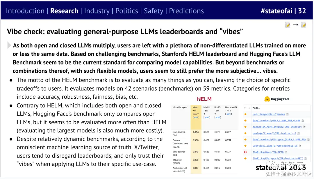 Hugging Face 的排行榜和斯坦福 HAI 研究中心的 HELM 作为其中的佼佼者,代表了评估体系的最流行和最全面的标准。
