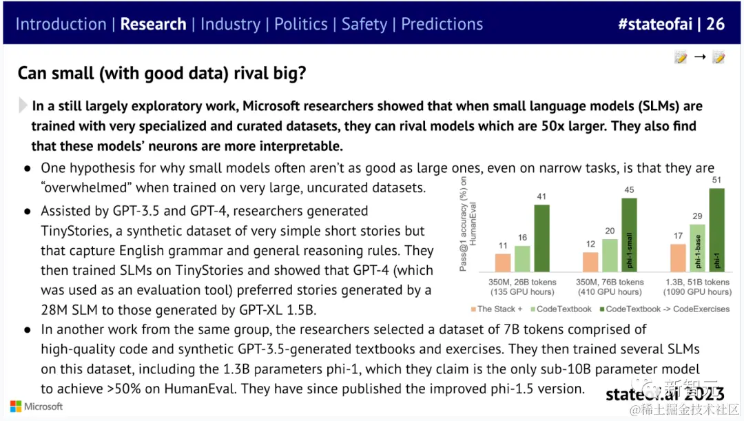 除了 LLM,包括微软在内的研究人员一直在探索小规模语言模型的可能性,发现使用高度专业化的数据集训练的模型可以与 50 倍大的竞争对手相媲美。