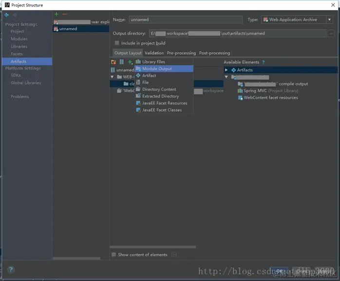 7、点击图标,选择【Module Output】菜单给【classes】目录添加内容。如下图: