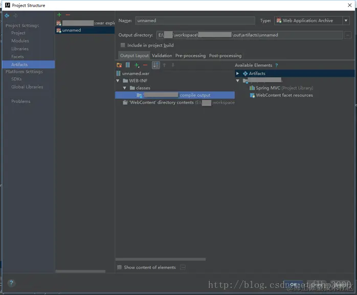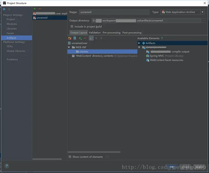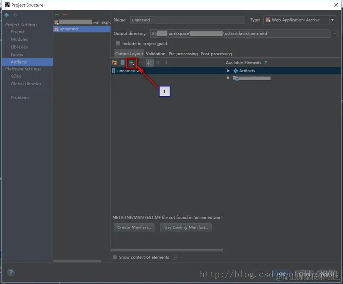 2、在【ProjectStructure】中选择左侧的【Artifacts】页签。如下图: