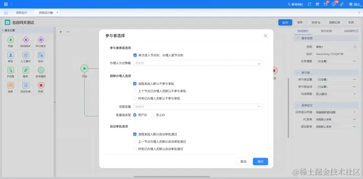 流程发起人默认自动审批通过:如果当前节点的参与者包含流程发起人,则自动审批通过。