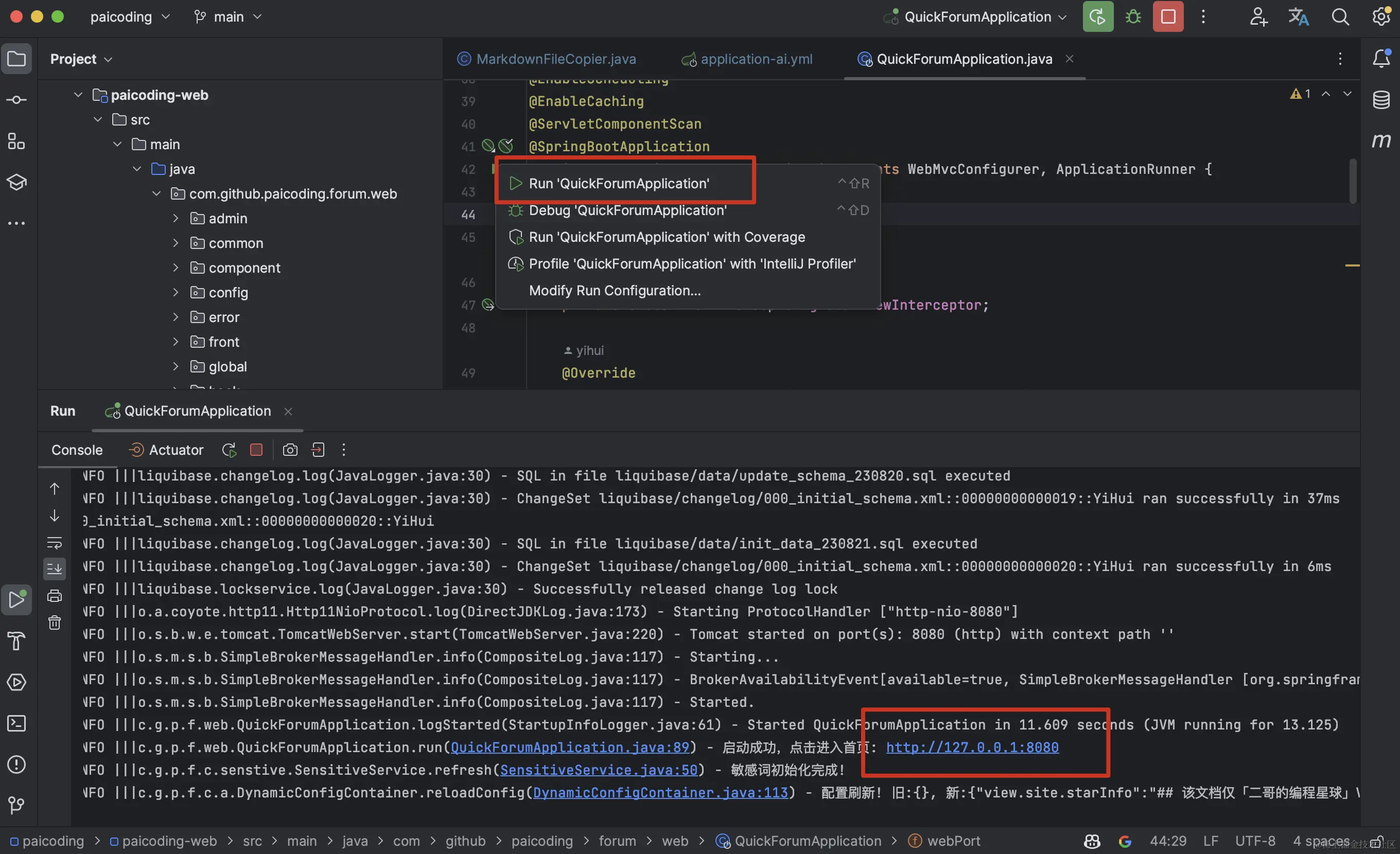 运行主程序 QuickForumApplication。