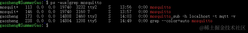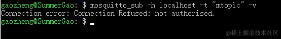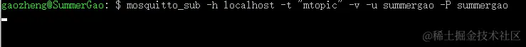 mosquitto_sub -h localhost -t "mtopic" -v -u summergao -P summergao