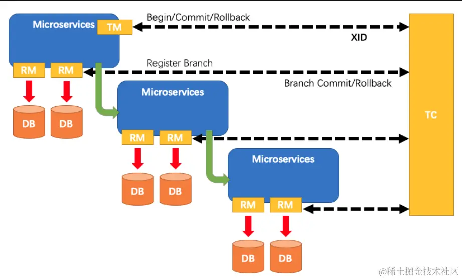 - XID 在微服务调用链路的上下文中传播;