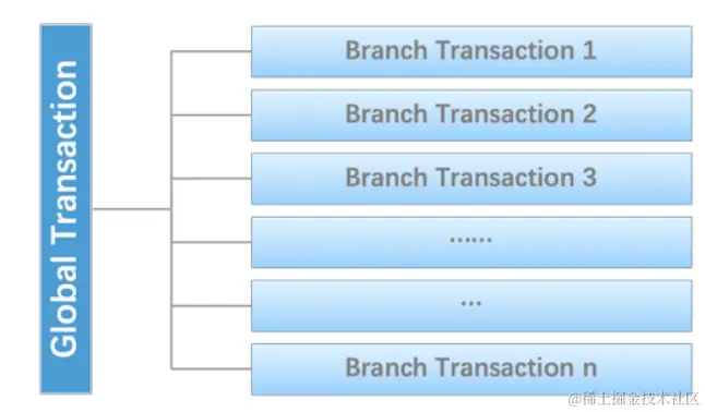 我们可以把一个分布式事务理解成一个包含了若干分支事务的全局事务,全局事务的职责是协调其下管辖的分支事务达成一致,要么一起成功提交,要么一起失败回滚。此外,通常分支事务本身就是一个满足ACID的本地事务。这是我们对分布式事务结构的基本认识,与 XA 是一致的。