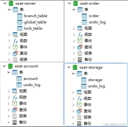 - 由于我们使用了db模式存储事务日志,所以我们需要创建一个seat-server数据库,建表sql在seata-server的