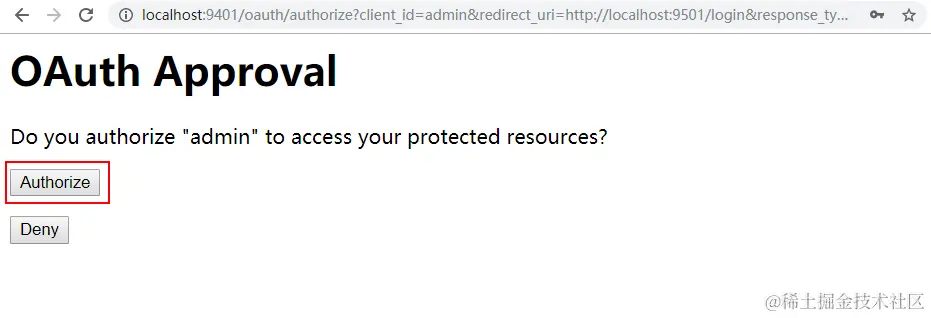 - 访问客户端需要授权的接口http://localhost:9501/user/getCurrentUser会跳转到授权服务的登录界面;