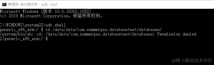 /system/bin/sh: cd: /data/data/com.summergao.databasetest/databases: Permission denied