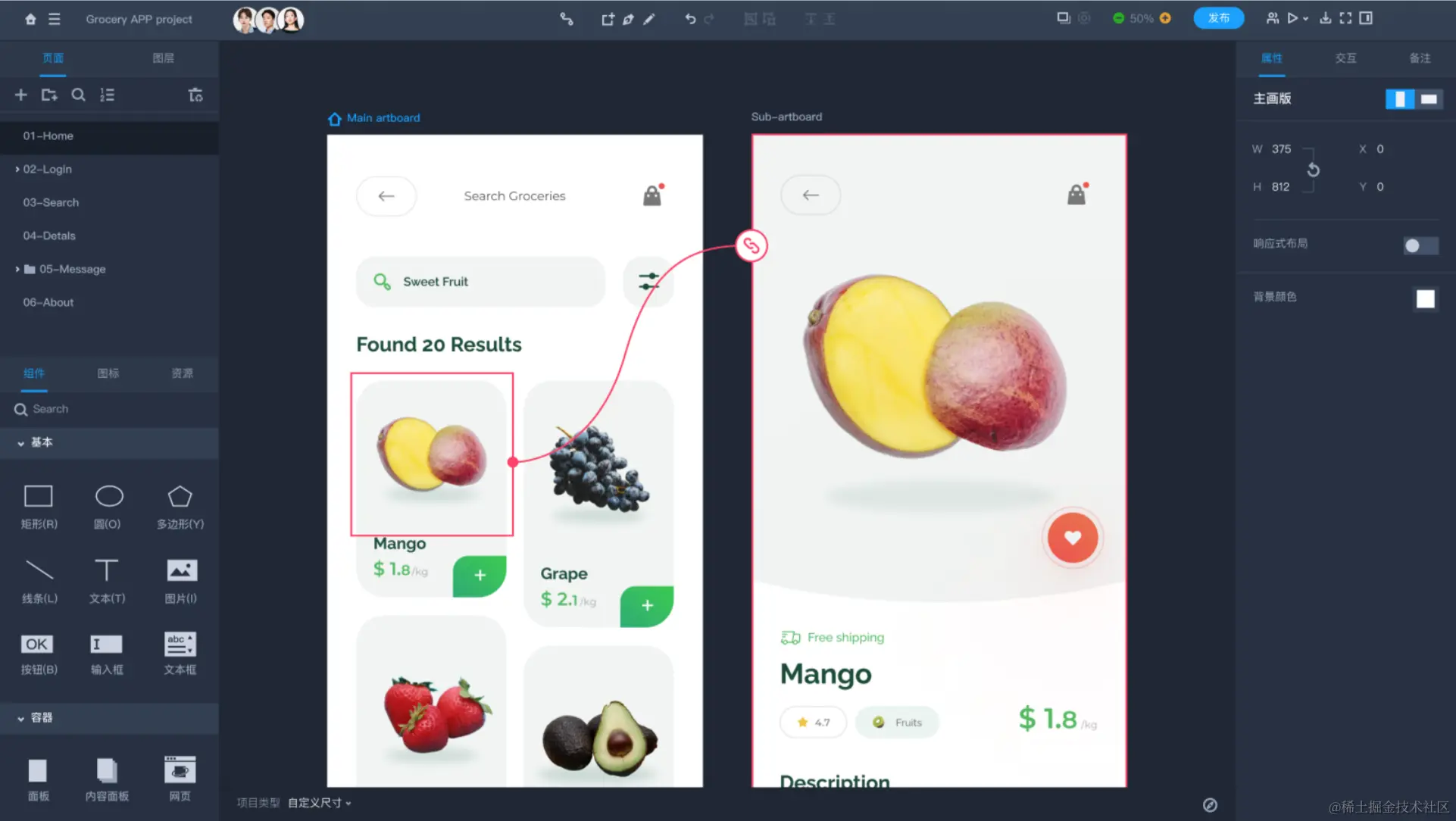 快速原型设计:丰富的预设组件和模板,快速创建交互原型。