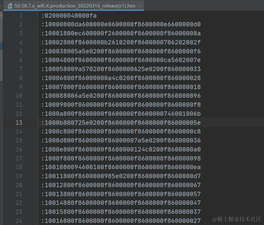 hex文件内容如下格式: