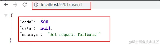 - 关闭user-service,调用该地址进行测试:http://localhost:9201/user/1 ,发现已经返回了服务降级的处理信息。