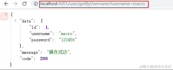 - 重新启动api-gateway服务,并调用该地址测试:http://localhost:9201/user/getByUsername?username=macro