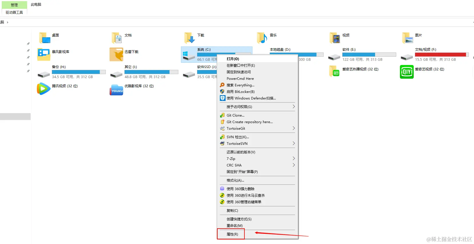 1. 右击文件所在的盘;