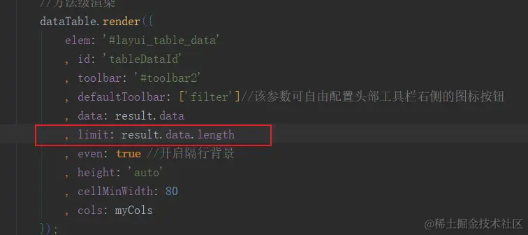 【解决】Layui表格通过data加载数据不分页只显示10条数据问题 SummerGao 2023-10-17 211 阅读1分钟 问题描述: Layui表格使用指定内容的data , 没用 url 和 分页 ,总是只显示10条。 原因分析: 即使没有用分页,表格配置里的limit默认值也是10。 解决办法: 添加一下 limit 属性,赋值为 data.length