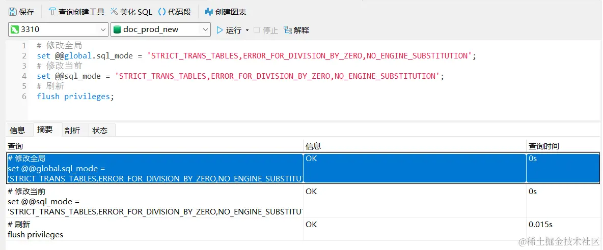 2、修改sql_mode(将上述查询到的sql_mode中的NO_ZERO_DATE和NO_ZERO_IN_DATE删除即可)
