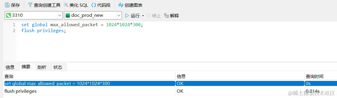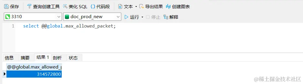 调整 max_allowed_packet 大小(这里设置成:300M):