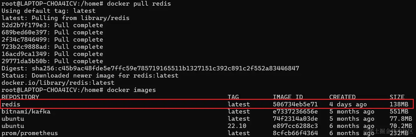 root@LAPTOP-CHOA4ICV:/home# docker pull redis