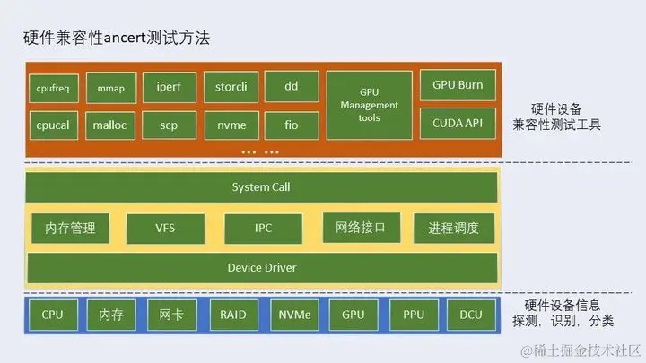 硬件设备兼容性测试工具包括 scp、fio、iperf 等等。另外,针对 GPU,目前已经支持了四个厂商设备的测试。