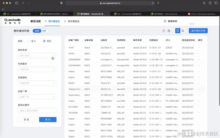 龙蜥社区硬件兼容性项目成员审核测试结果。