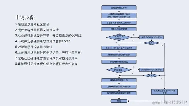 - 构建龙蜥社区硬件兼容性流程体系,包括验证标准,申请流程,硬件测试,结果验证,列表发布等流程。