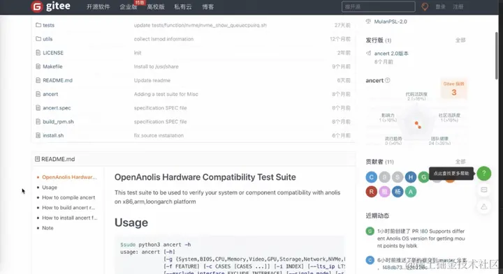 其他详细内容请参阅硬件兼容性 SIG(链接见文末)。目前 ancert 作为硬件兼容性标准的实现工具,正在逐步实现标准里的规定的内容。同时,龙蜥硬件兼容性 SIG 和龙蜥标准化 SIG 正在合作制定龙蜥社区硬件兼容性标准,将于近期发布,欢迎关注。