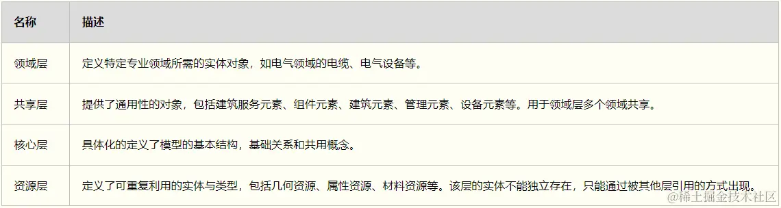 IFC架构分为四个层:领域层、共享层、核心层、资源层。