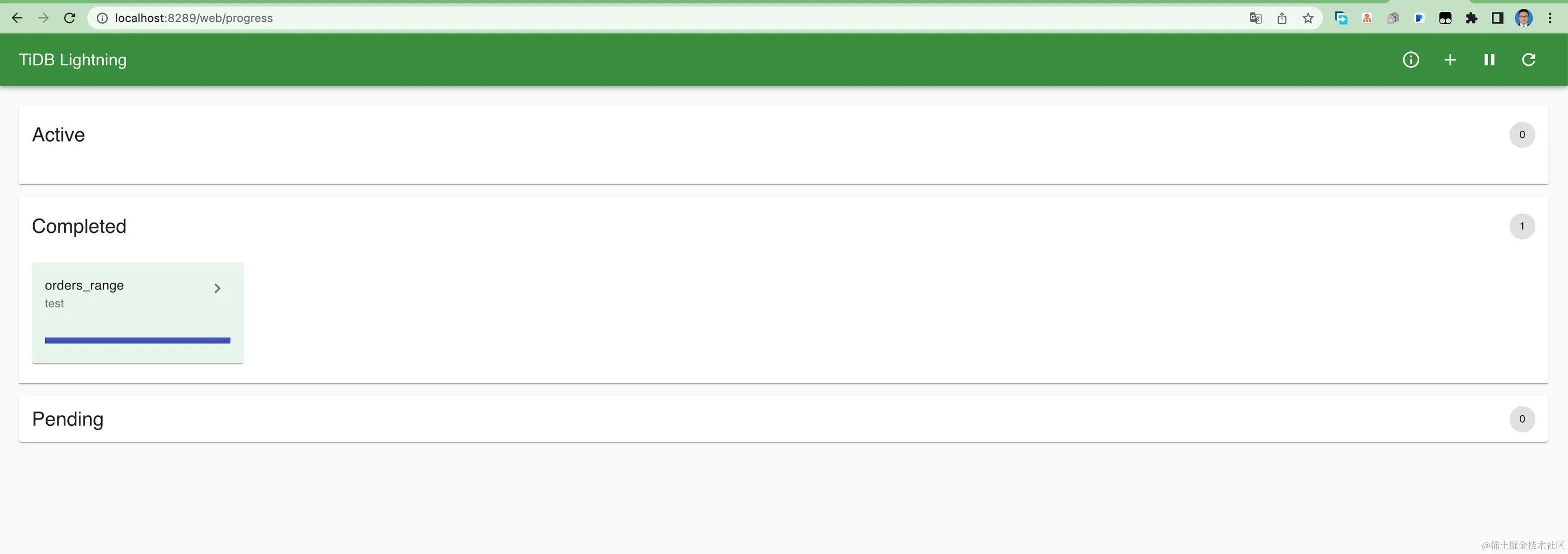 可以看到,我们使用 Web ui 上传相关配置即可调用 lighting 来导入数据