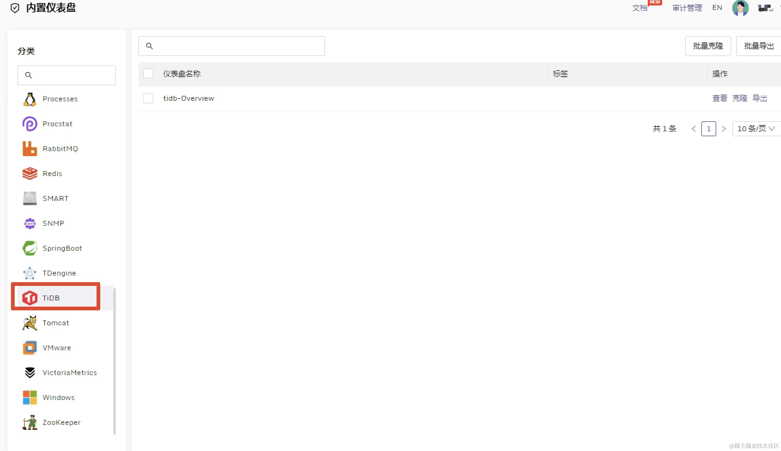 经过我司大量的实践,已经适配出了一套常用的监控数据,并且已经提交给夜莺官方,在最新企业版“仪表盘-内置仪表盘”可以看到 TIDB 监控模版。各位可直接使用。开源版暂时未放出,不过有兴趣的需要可私聊题主,或者在文章下留言,即可得到同款模版(由于文章限制 json 文件不太好进行附件)。