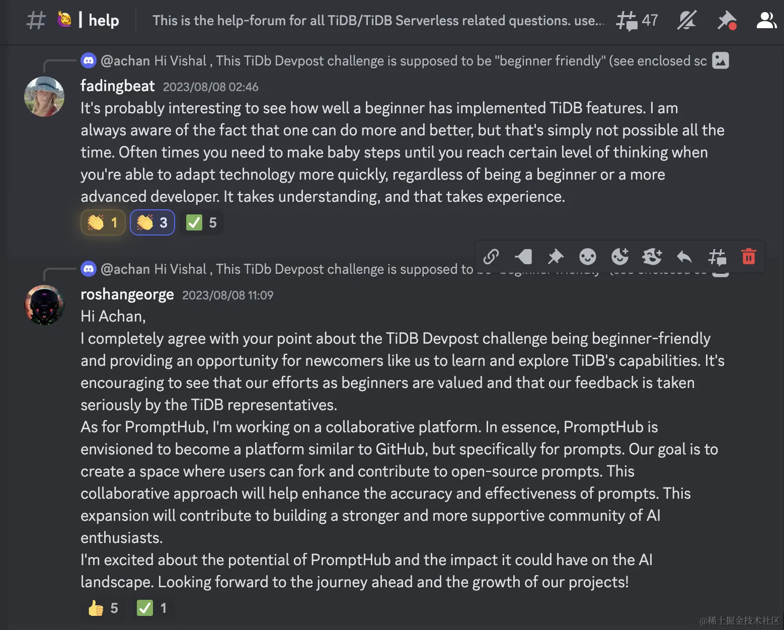 来自 TiDB Discord Channel 参赛者讨论截图