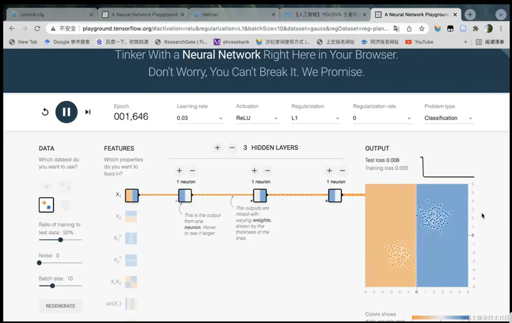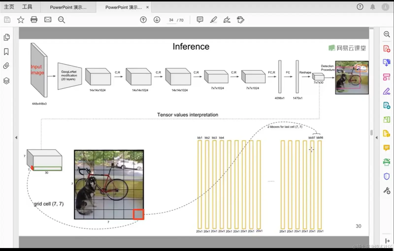 狗的类别如果是1-19,那就输出他的候选框和置信度。如果类别不是狗,就不显示了,所以最后有三个输出,这三个在类别里面有最高值,就可以知道大概是什么了。判定流程。(反向,根据损失反向调整)