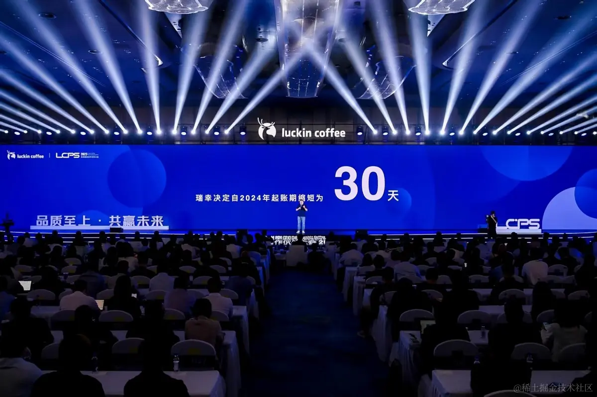 此外,郭谨一还宣布了一则重磅消息:为感谢各位合作伙伴的支持,瑞幸决定自2024年起账期缩短为30天。此举将增进瑞幸与合作伙伴之间的互信共赢关系,打造良性的竞争环境,促进整体行业的规范化发展。