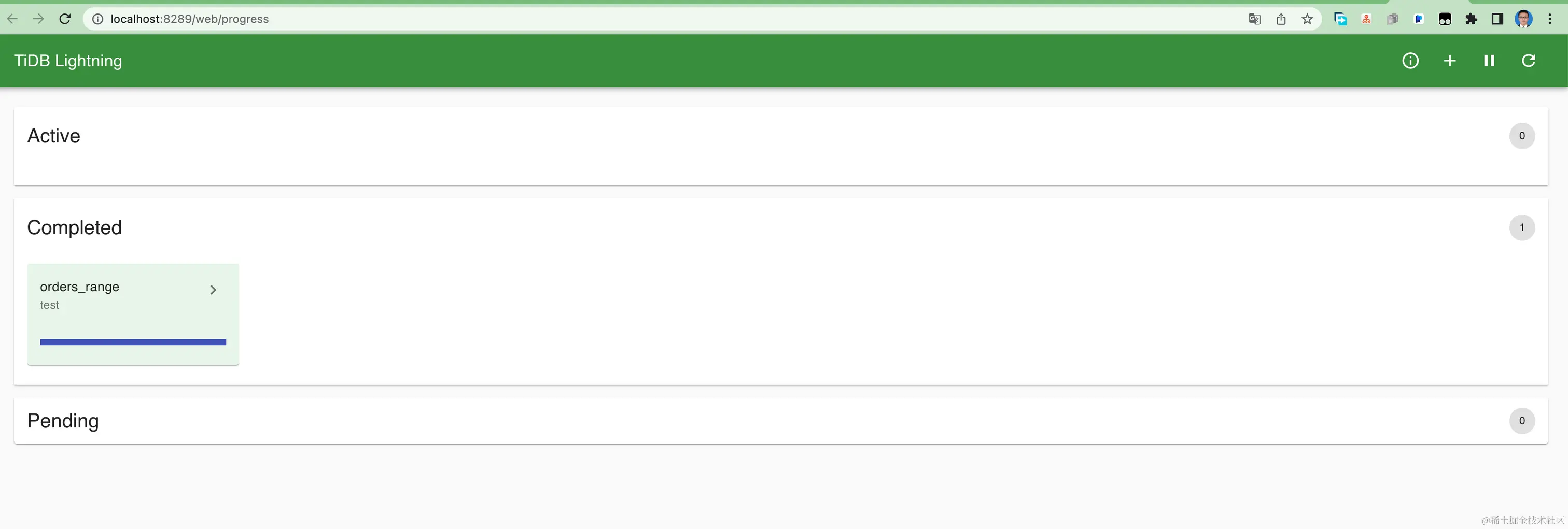 可以看到,我们使用 Web ui 上传相关配置即可调用 lighting 来导入数据