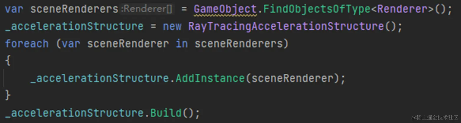 - 把所有需要Trace的Renderer放进AccelerationStructure(加速结构)。