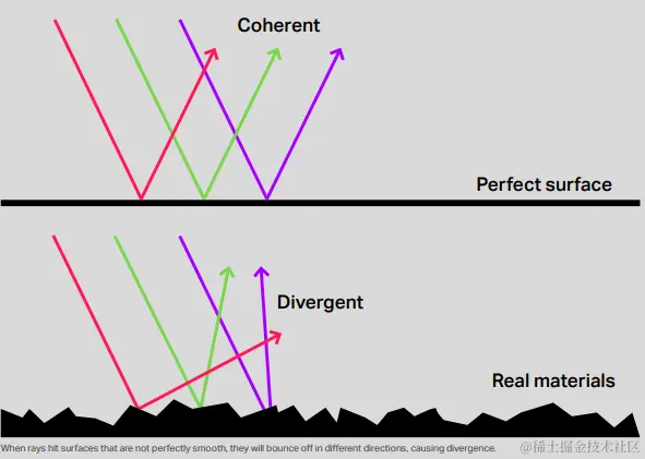 平行的光线在经过真实材质的反射、折射后,往往会朝向完全不同的方向。或者一束平行的光线,A和某个模型相交了,而B没有相交,那么A和B后续的Trace计算就是完全不一致的。这种不一致性对GPU的并行架构其实是很不友好的。