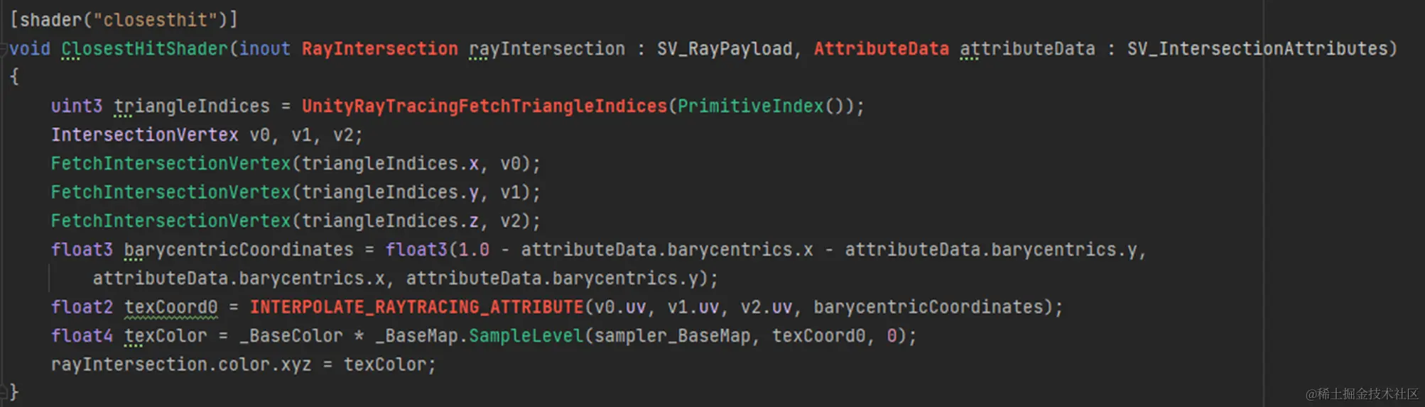- 在模型Shader中处理光线相交后做什么,例如做一些光照计算,或者继续发射下一次光线。