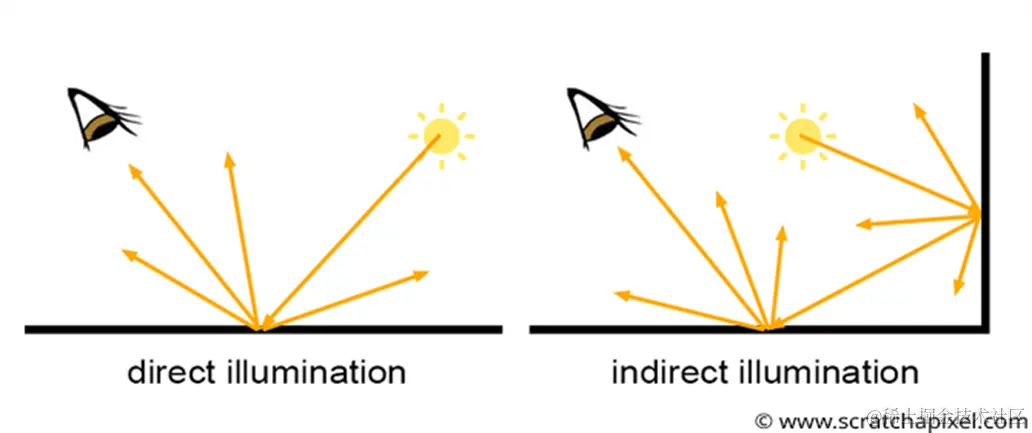 GI(Global Illumination,全局光照)考虑的是光线在场景中多次折射反射造成的直接光结果和间接光结果。只看文字,和Raytracing的概念很像。