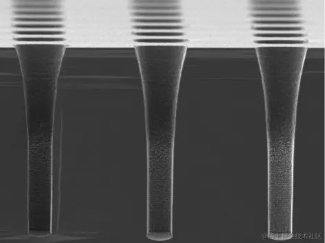 要做到 2.5D / 3D 封装,最关键的技术就是硅通孔技术,也就是 TSV (Through Silicon Via)。由于每块芯片都有复杂的电路,芯片和芯片之间的连接 比 单纯的芯片和基板之间的连接要复杂的多。芯片设计工程师们想到的办法就是打孔,直接把芯片的焊点打穿,形成一个个通孔,然后在通孔里面填充金属材料,这样就把芯片一层一层串联起来了,就像搭积木一样。要如何在那么小的芯片上精准开孔,并且不损伤到芯片自身的电路,然后还要在通孔里面精准填充金属来实现键合,还要保证晶片不会发生翘曲和破裂,这个技术的难度非常高。整个工艺流程涉及到激光刻蚀、气相沉积、电镀等环节,精细程度已经是接近半导体晶圆制造环节了。