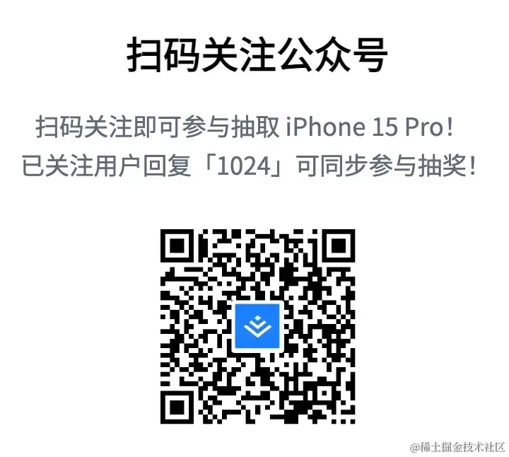 2)关注「掘金开发者社区」公众号抽 iPhone15Pro ,完成可得10积分