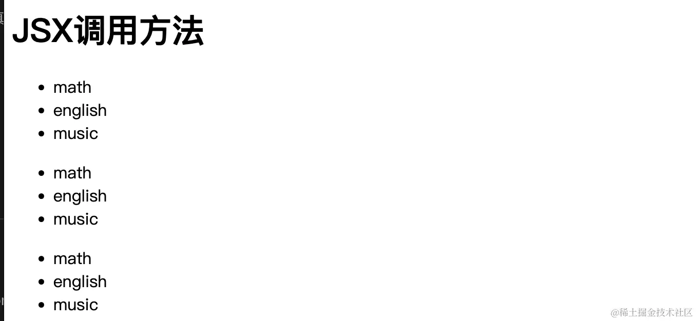 需要注意的是,数组默认是可以直接渲染的,也就是说不需要采用map等方法也可以渲染,它会把内容默认连接在一起,显然这么做没有什么意义。