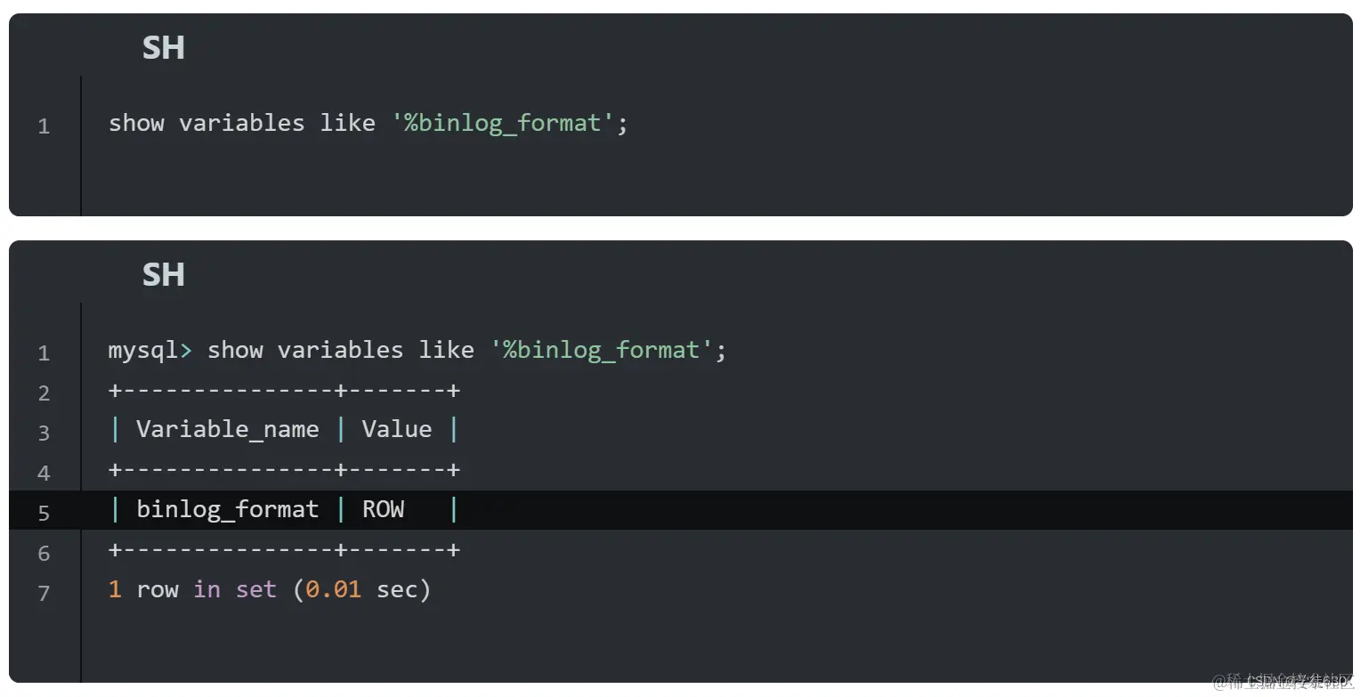 如果我们需要配置二进制日志的格式,只需要在 /etc/my.cnf 中配置 binlog_format 参数即可。