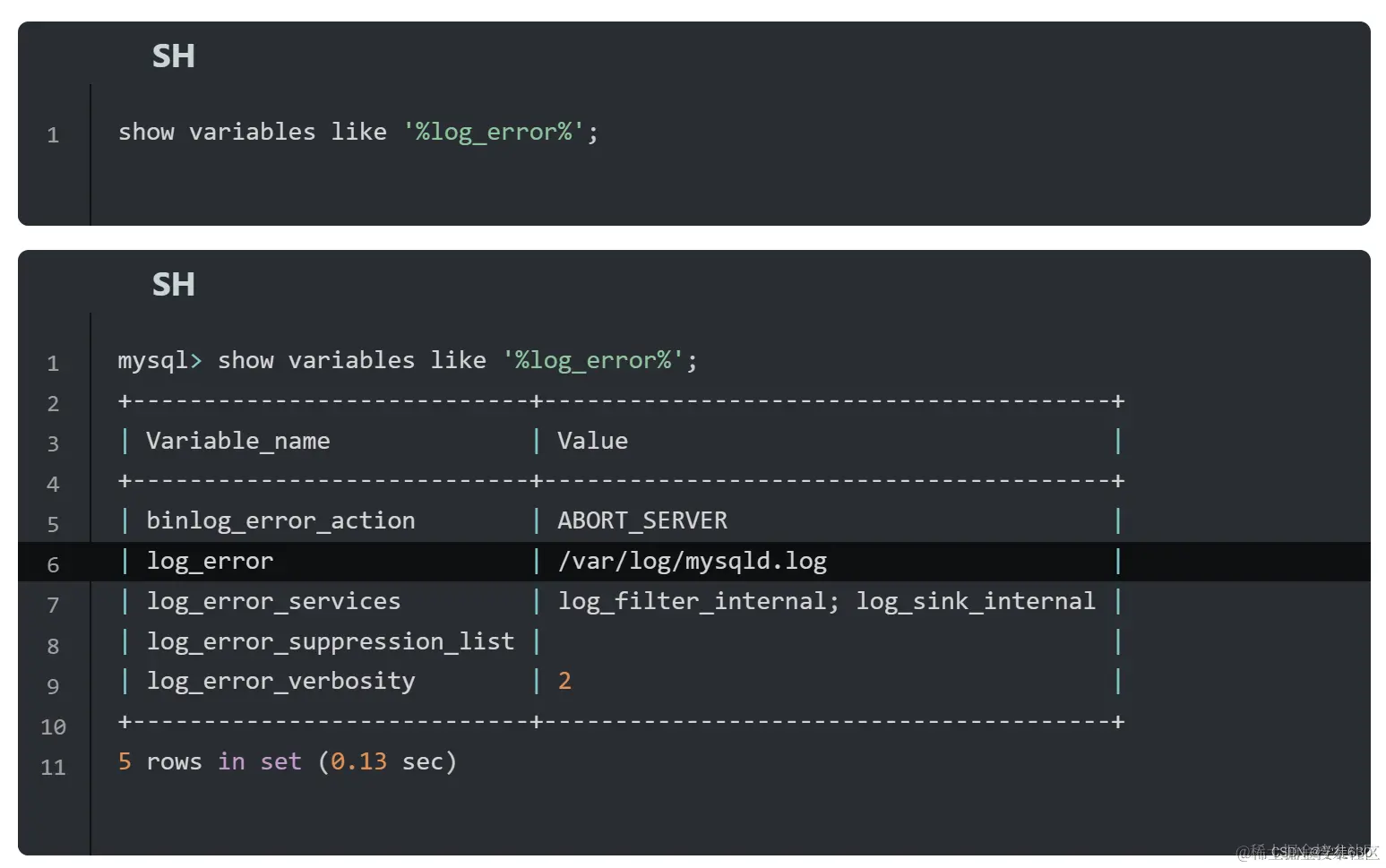 该日志是默认开启的,默认存放目录 /var/log/ ,默认的日志文件名为 mysqld.log 。查看日志位置:
