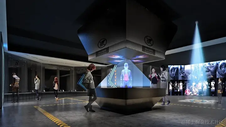 全息投影不需要人戴任何偏光眼镜,可以毫无束缚地观看3D幻影立体显示,给人视觉冲击力和深度感。这种展示形式尤其适用于科技馆展厅,体验感和互动性都很强。
