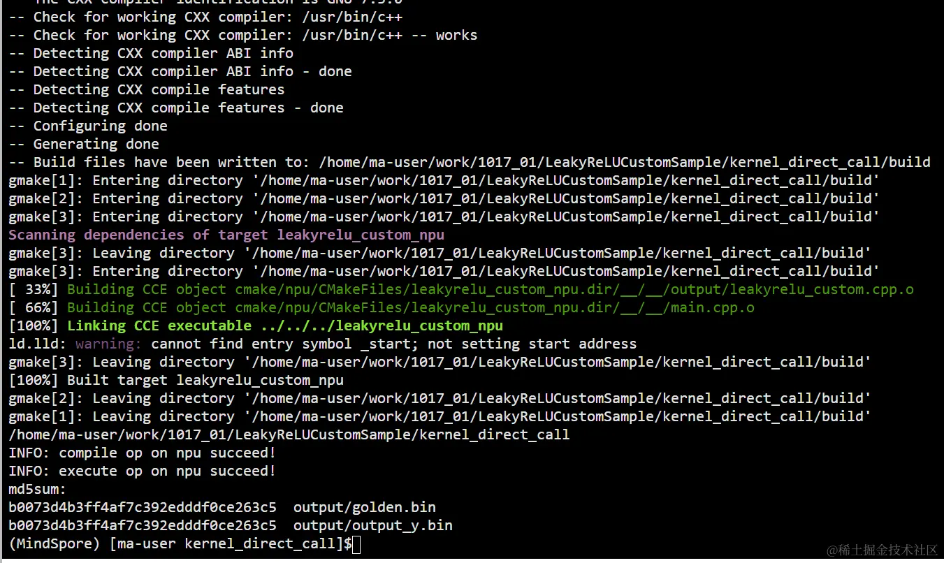 进入“kernel_direct_call”目录,运行“bash run.sh ascend910B1 cpu”