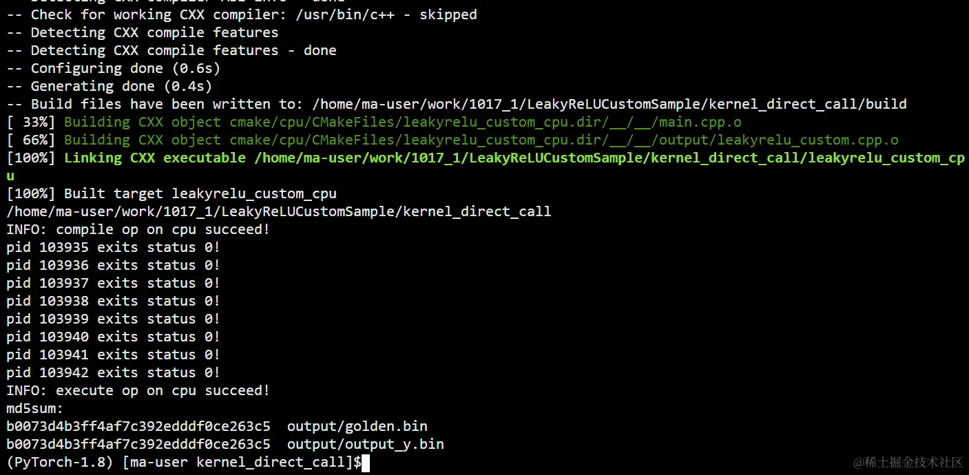 至此,完成了leakyrelu算子的开发和核函数调用方式的验证。