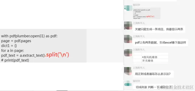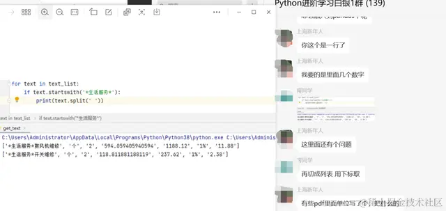 粉丝自己写了一个代码和正则表达式,但是出来的结果不尽人意,想在群里寻求大佬们的帮助。这里【甯同学】给了一个思路和代码,如下所示: