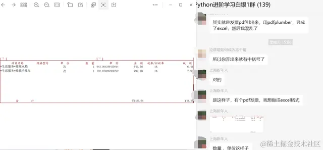 不过这里还涉及到一个场景,其实这个数据来源是pdf发票识别,然后存为Excel的,所以看上去格式还比较乱。