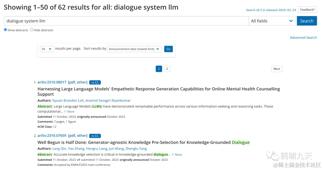 ArXiv 上搜了下对话系统和大模型两个关键词,相关文章有62篇