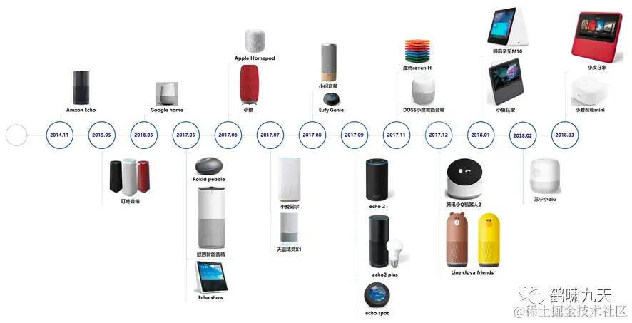 怀着对下一代人机交互模式CUI的美好憧憬,各大厂接下来几年纷纷布局 对话系统类应用:智能客服、智能音箱、智能外呼、智能座舱等等,其中智能音箱优秀代表:小米小爱、天猫精灵、百度度秘。