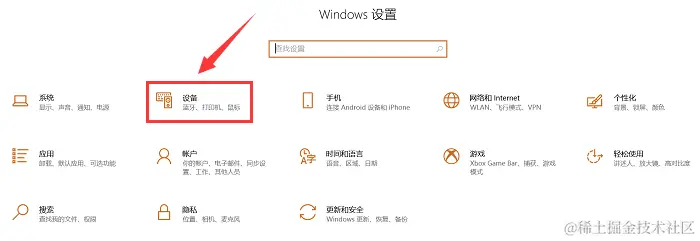 1.按下快捷键【win+i】打开【设置】 ,然后选择【设备】>【键盘】;